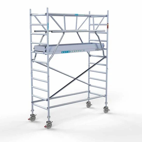 - Aliumininiai pastoliai su dvigubomis sulankstomomis apsaugomis papildomam saugumui.
