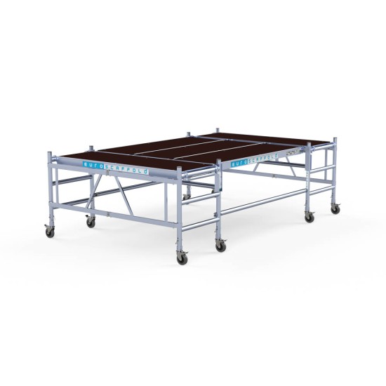 Este andamio de dimensiones 190x340 cm consta de dos partes plegables entre las cuales se pueden instalar tres plataformas. Esto proporciona una gran superficie de trabajo con suficiente espacio para todas las herramientas y materiales necesarios. Las plataformas son ajustables en altura y están disponibles en diferentes tamaños. El andamio es fácil de mover, ligero y se puede montar a diferentes alturas. Dos consolas de soporte también están disponibles por separado, lo que permite usar partes y plataformas propias para crear un andamio multiplataforma personalizado. Con este andamio, obtienes un lugar de trabajo ideal ajustado a la altura de trabajo deseada para realizar todo tipo de trabajos de yeso y acabado.